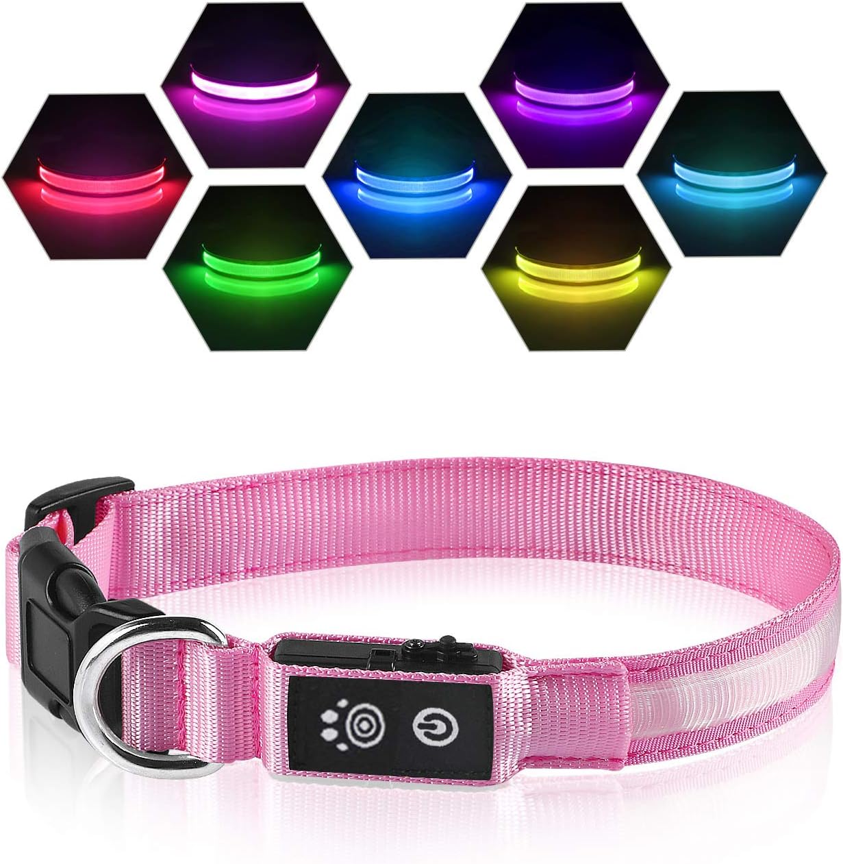 BSEEN Light Up Dog Collars Reflective LED Dog Collar, Rechargeable Dog Glow Collar, Waterproof. Light Up Dog Collars, Multi-Color USB Rechargeable Dlitk LED Dog Collar 1 Count, TPU Cuttable Size Glow Collar for Dogs, Dog Collar Light, Please Do Not Use Fast Charging (Green+Blue) 4.5 out of 5 stars The LED collar provides high visibility and can be seen up to 500 meters away, ensuring that dogs are safe from vehicles and other hazards..